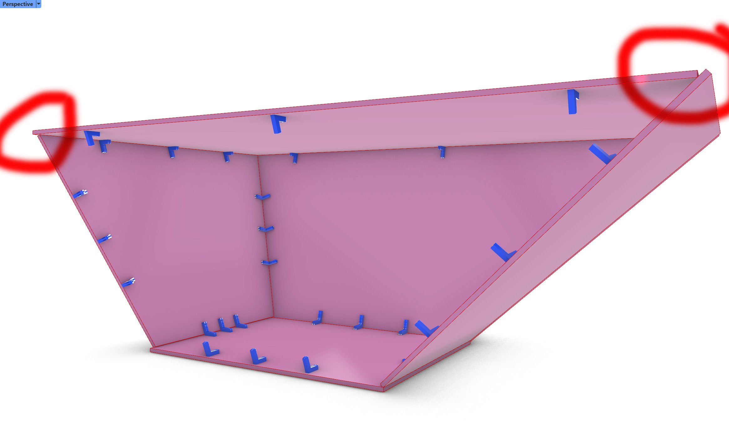 2. The same applies to the "supports" (secondary structure), as each one seems to have a different contact angle. (Also, a label or name for each piece to be able to assemble the object.)